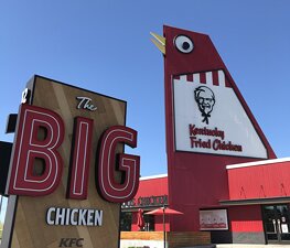Sorry, but currently we do not have detailed information about this tourist attraction called «Big Chicken» in DIQ. If you can tell us something interesting about it, please do it! Information on «Big Chicken» is available in the following languages: Deutsch, English